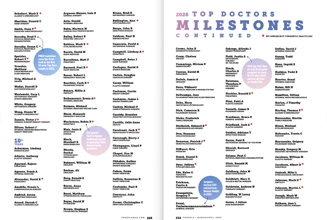 2026 Top Doctors Milestones The complete list of 10- and 20-year Top Doctors honorees, spanning the full 30-year history (1995-2025) of the issue. Learn More